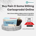 Buy Pain O Soma 500mg (Carisoprodol) online from pills4cure, a trusted source for muscle relaxant medication in the UK. These tablets are designed to help relieve muscle pain, muscle stiffness, and muscle discomfort associated with musculoskeletal conditions. Convenient online ordering makes it easy to get authentic Pain O Soma 500mg delivered safely to your doorstep. Currently, the product is on sale with a 20% discount, making it an affordable option for effective pain management. Shop now at pills4cure and experience fast, reliable relief from muscle pain.